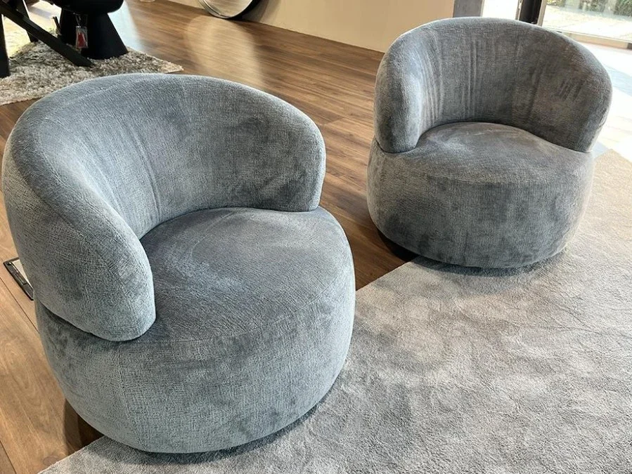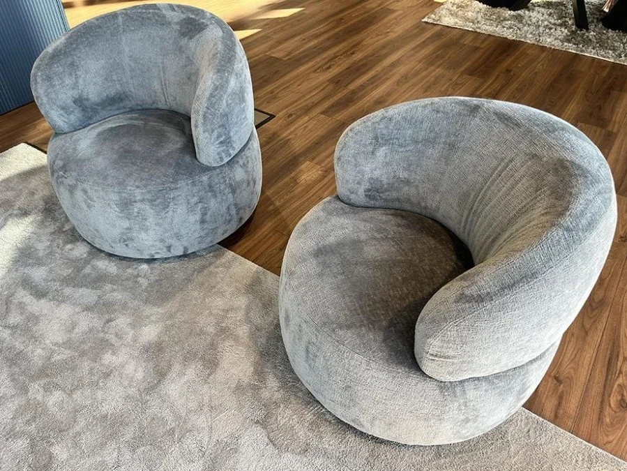 È possibile personalizzare l'acquisto, abbinando anche la poltroncina girevole, con le stesse caratteristiche e finiture. La coppia di poltroncina modello Cookies può essere accostata anche al divano modello Cookies di Barzaghi Salotti che trovate in offerta, in una scheda dedicata.
