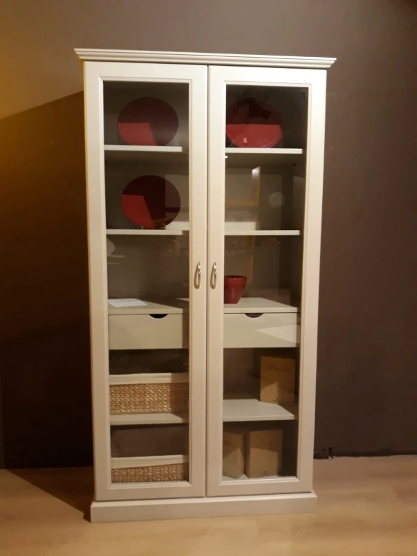 Mobile vetrina artigianale su misura laccato opaco tortora con vetro trasparente. Dim. 90*180h p. 45 cm