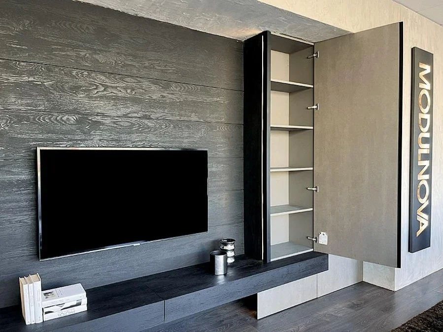 Il mobile soggiorno MH6 Living di Modulnova rappresenta l'essenza del design contemporaneo, unendo eleganza e funzionalità in un'unica soluzione. La sua finitura Miltech iron, abbinata alla boiserie dogata, conferisce un aspetto sofisticato e moderno, perfetto per chi desidera un ambiente raffinato.