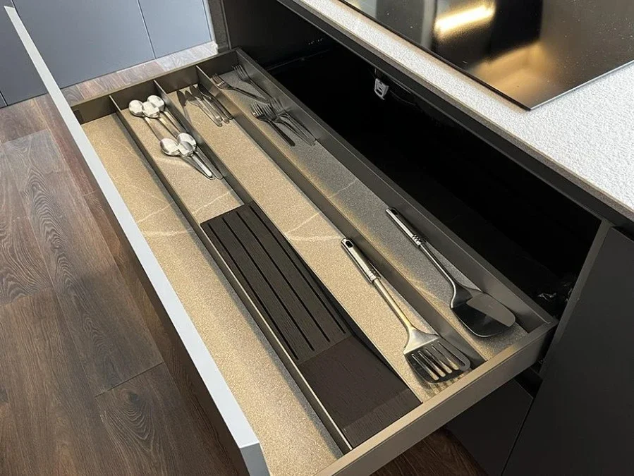 - n. 1 base per piano cottura e n. 2 cestoni con porta posate in gres da 120 cm