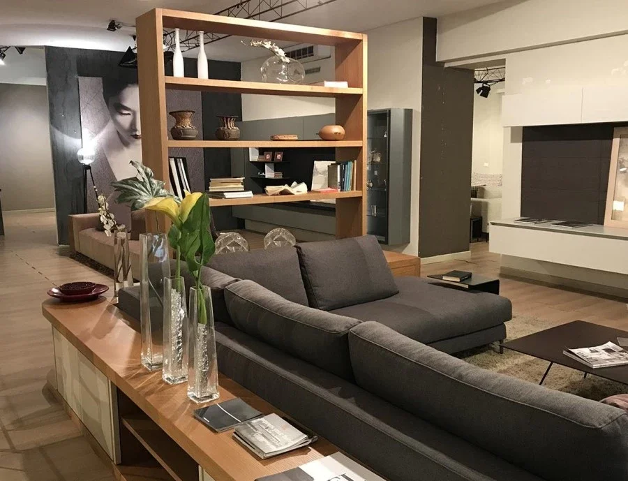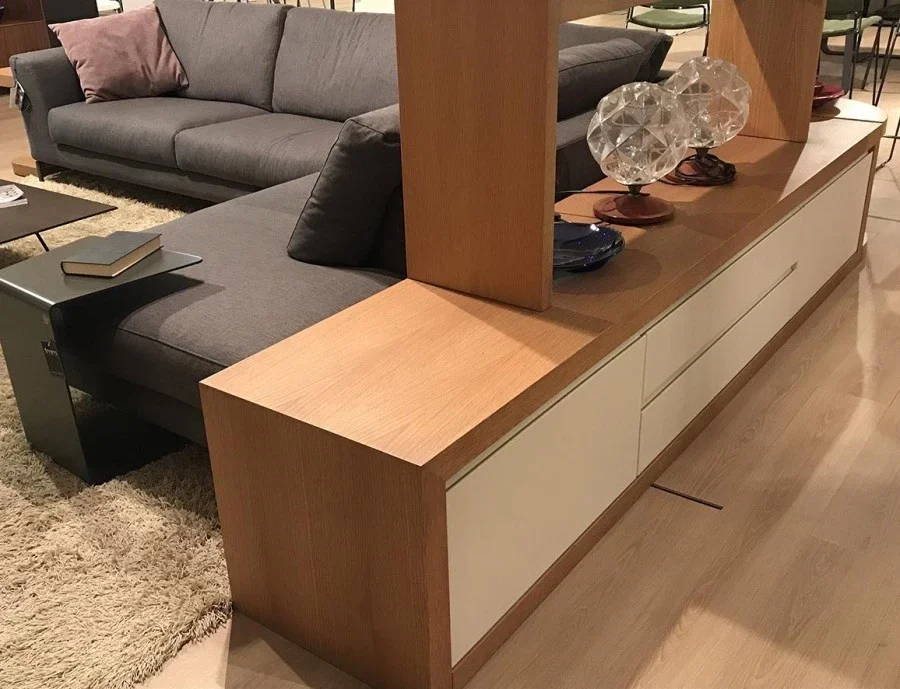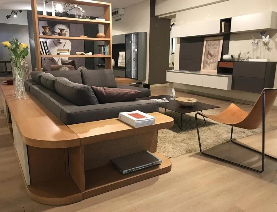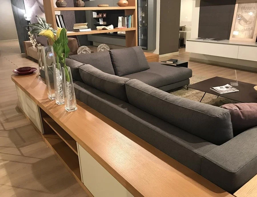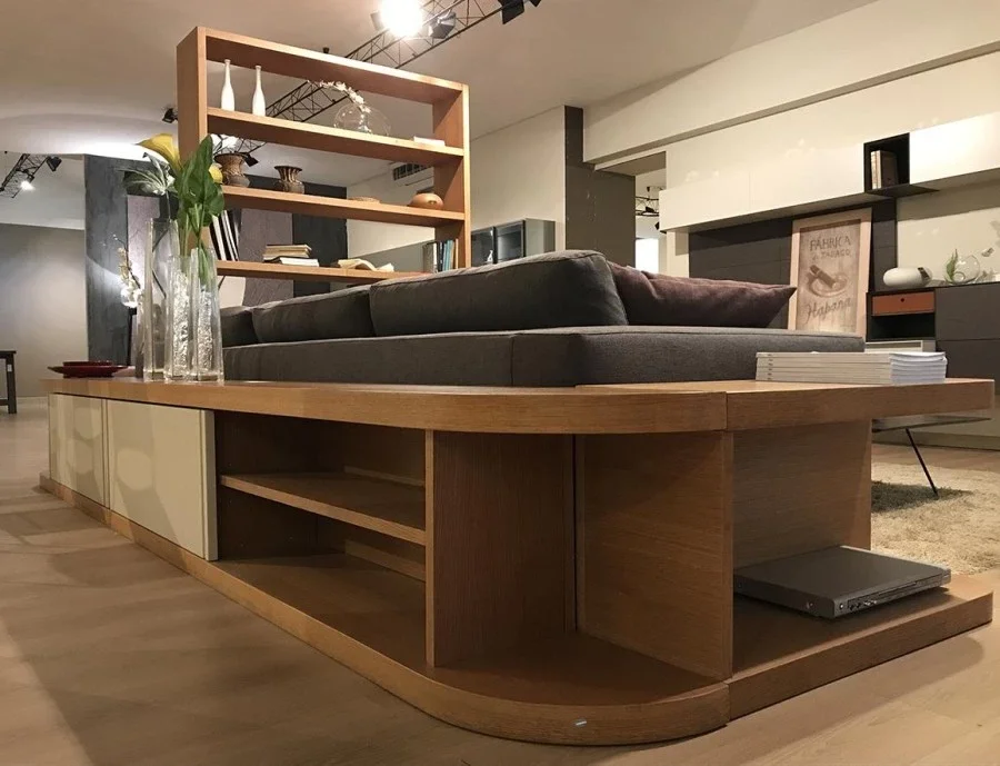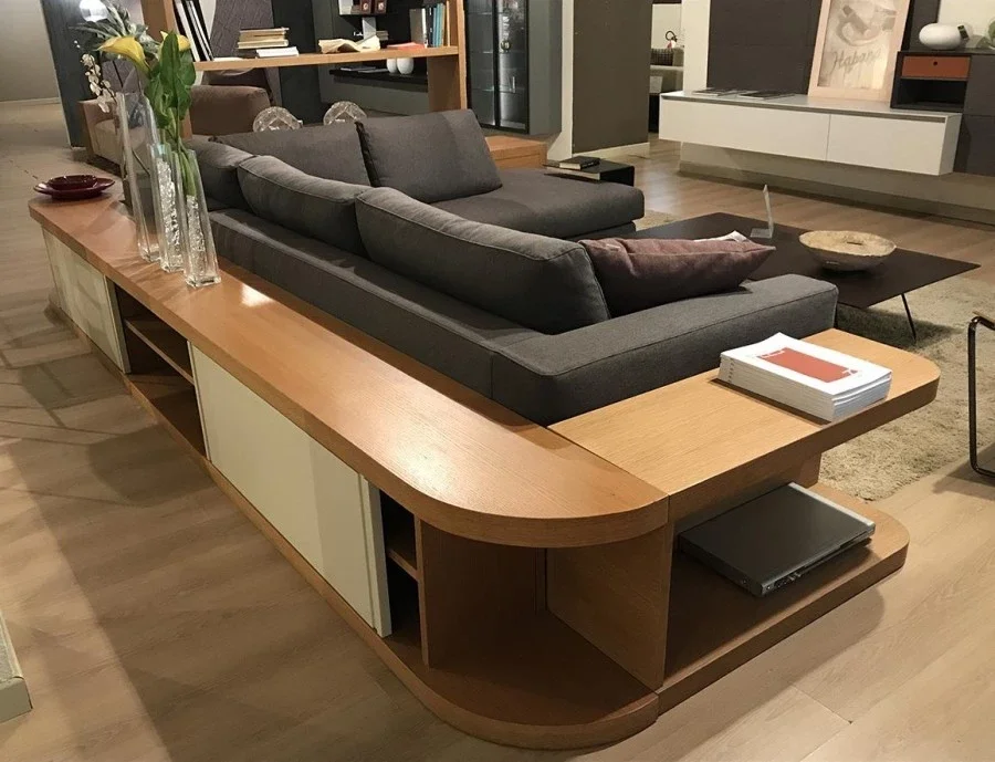 Retro divano di FMM Design, di produzione artigianale, esclusivo ed avvolgente, permette di creare un contesto di soggiorno moderno, attorno al quale si sviluppa la convivialità, perchè permette di alloggiare un divano dalle forme generose (ex. vedi scheda dedicata al Divano Ditre Italia ARTIS).