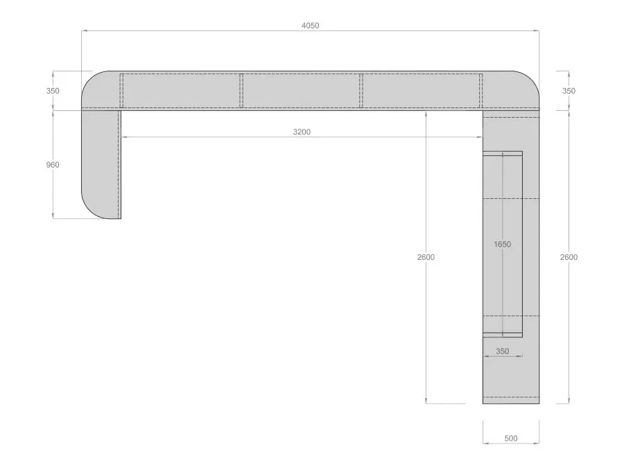 Misure: L 405 cm x P 295 cm x H 180 cm